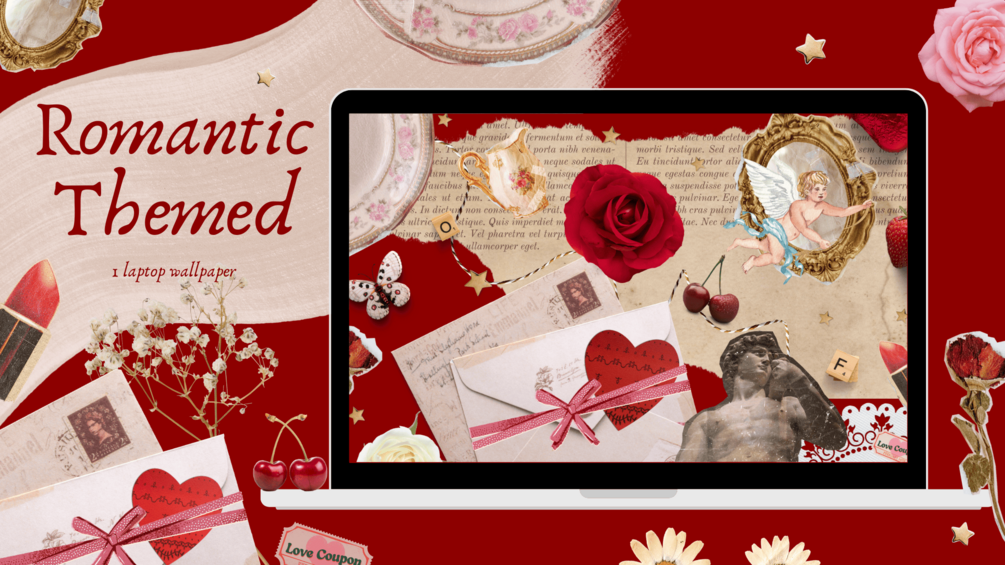 A romantic themed desktop wallpaper - inspired by scrapbooks and clutter.